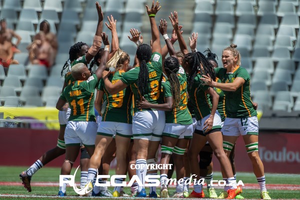 The Bok Women’s Sevens ‘A’ side piled on the pressure for the remaining minutes, and with no time left on the clock, Byrhandré Dolf kicked ahead, but Brazil could scramble back to dot down and bring an end to the game.
