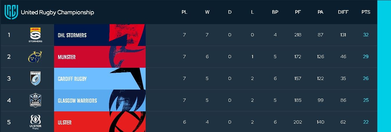 On the log, the Stormers lead comfortably, with Munster and surprise package Cardiff in pursuit. Glasgow's win keeps them in the top four. The race for playoff spots (top 8) remains wide open heading into the festive derbies in Rounds 8-9. Overall, Round 7 reinforced the URC's competitiveness, with derbies living up to the hype and the South African sides showing strong form at home. The league pauses briefly before more holiday fixtures, expect more drama!
