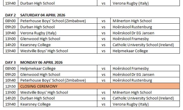 For those unable to attend the festival, games will be live-streamed on the SuperSport Schools app. Additional festival information, results, match reports and action photographs will be available on www.kearsney.com during the festival.