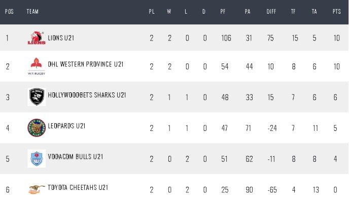 Fidelity ADT Lions u/21 and DHL Western Province u/21 remained unbeaten following the scheduled fixtures in Round Two while the Cell C Sharks got their season back on track with a great win against the Toyota Cheetahs u/21.