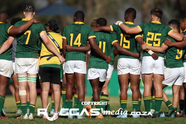 South Africa U18: 1 Kai Pratt, 2 Altus Rabe, 3 JG Badenhorst, 4 Jayden Joubert, 5 AJ Meyer, 6 Chinedu Amadi, 7 Josh Neill, 8 Gert Kemp, 9 Morne Noble, 10 Liyema Nela, 11 Jadrian Afrikaner, 12 Ethan Adams, 13 Markus Muller, 14 Junaide Stuart, 15 Zekhethelo Siyaya. Replacements: 16 Keenan Myners, 17 Jordan Jooste, 18 Matthew Van Der Merwe, 19 Lwandile Mlaba, 20 Wasi Vyambwera, 21 Jacobus De Villiers, 22 Jayden Brits, 23 Ruben Groenewald, 24 Christian Vorster, 25 Lamla Mgedezi, 26 Thabiso Simelane.