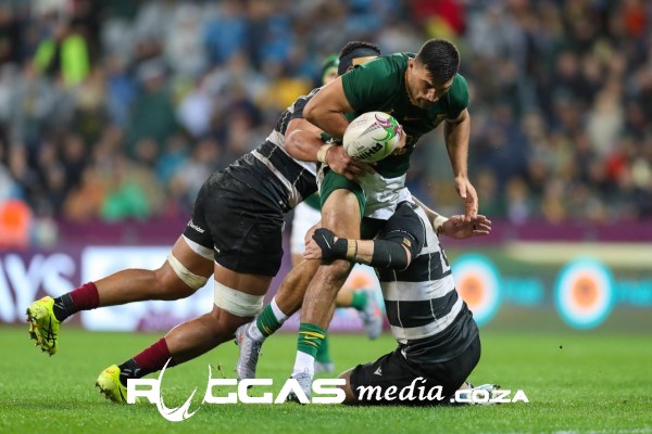 The forwards kept on punching holes in the Barbarians' defence and four minutes later a great grubber by Aphelele Fassie was collected by Cheslin Kolbe, who danced his way over for the Springboks' second try. Feinberg-Mngomezulu converted to extend the Springboks' lead to 12-00.
