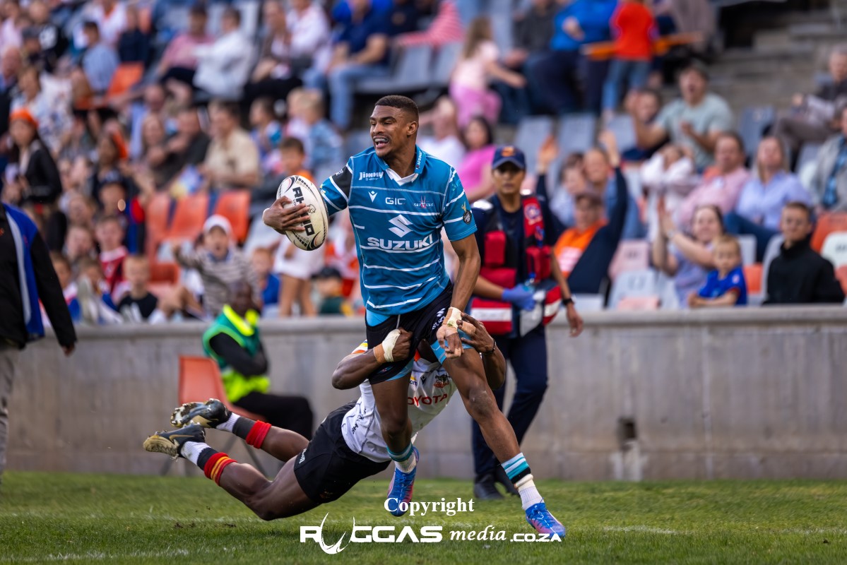 Suzuki Griquas: 15 Cameron Hufke, 14 Dylan Maart, 13 Zane Bester, 12 Mnombo Zwelenedaba, 11 Gurswin Wehr, 10 George Whitehead, 9 Caleb Abrahams, 8 Gustav Erlank, 7 Carl Els, 6 Lourens Oosthuizen, 5 Albert Liebenberg, 4 Malembe Mpofu, 2 Cebo Dlamini (captain), 2 Janco Uys, 1 Eddie Davids. Replacements: 16 Tiaan Lange, 17 Leon Lyons, 18 IG Prinsloo, 19 Derik Pretorius, 20 Marco de Witt, 21 Thomas Bursey, 22 Tom Nel, Connor Mahoney.