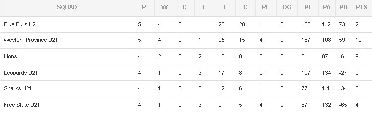 Currently, Vodacom Bulls are in first place on 21points, followed by DHL WP (19), the Lions and Leopards (both on nine points), Cell C Sharks (six) and the Toyota Cheetahs (four).